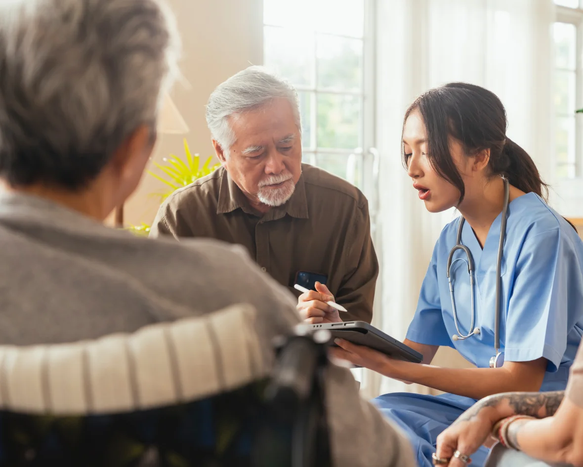 Unterstützung bei sozialen und pflegerischen Bedürfnissen durch Pflegehilfsmittel & Sozialdienstkoordination.